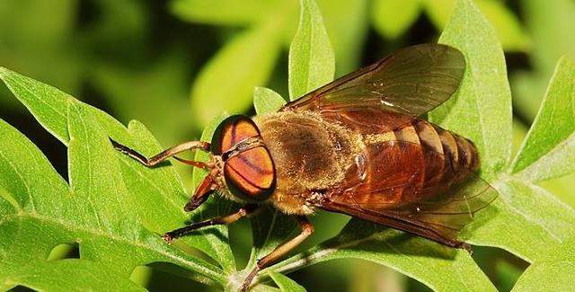 牛虻身體長度一般在兩到三厘米,有兩隻巨(jù)大的複眼,眼睛距(jù)離比較近,臉上毛比較短,有一個很粗的刺吸式口器。和食蟲虻的主(zhǔ)要區別是牛虻身(shēn)體(tǐ)比較胖、臉上沒長(zhǎng)毛、腿上沒有(yǒu)刺、複眼之間沒單眼。